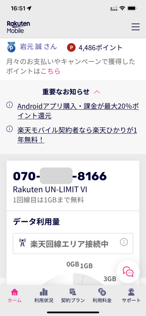 昨年末ぐらいに自宅近くに楽天のアンテナが建っていたので、何となく自分のiPhoneを確認してみたら、エリア内になっていました。